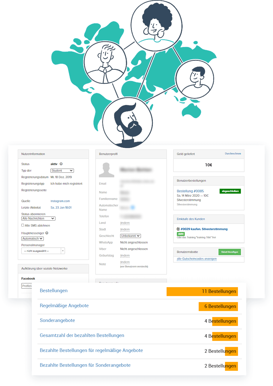 - Verkaufs- und Marketing-Modul — überprüfen Sie alle Ihre neuen potentiellen Kunden und Verkaufsstellen.