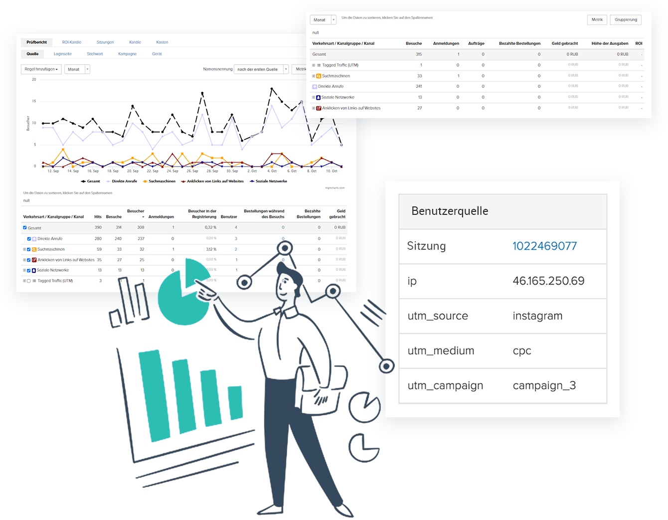 - Analytik-Panels — kontrollieren Sie die Frequentierung Ihrer Website und bringen Sie in Erfahrung, wie viele Besucher Ihre zahlenden Kunden wurden.