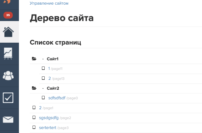 Die Strukur der Seiten und Ordner kann man im Site-Baum sehen: